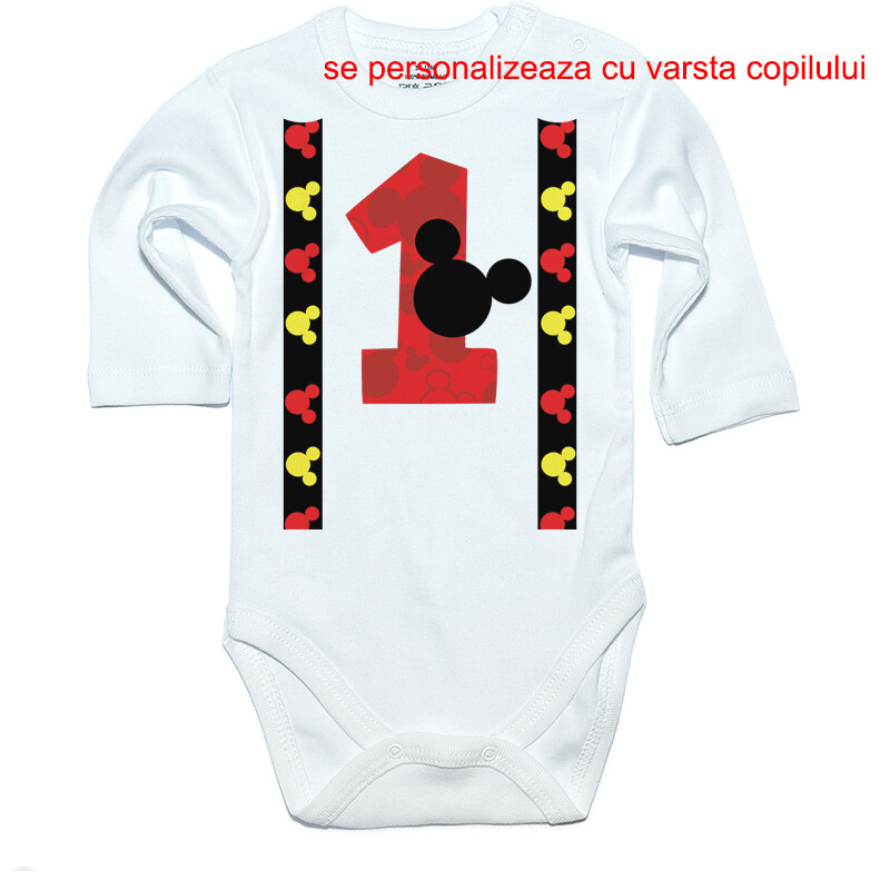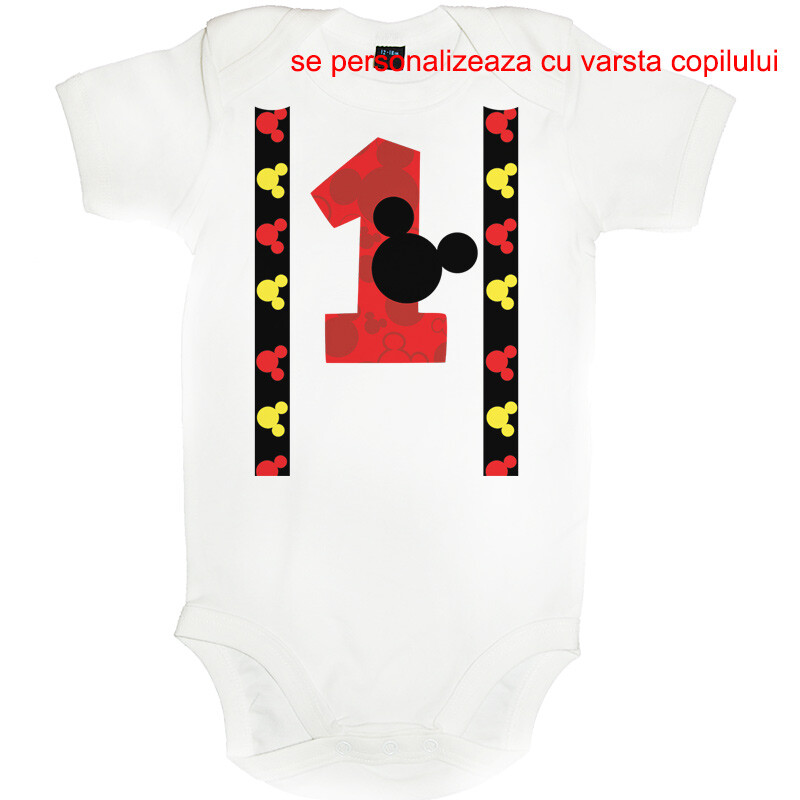 Tricou sau body personalizat pentru copii, cu imprimeu cu Mickey Mouse ,cadoul perfect pentru o petrecere aniversara, cu desen imprimat digital, direct in tesatura tricoului, cu vopsele pe baza de apa, fara potential alergen. Toate produsele sunt din bumbac 100%.