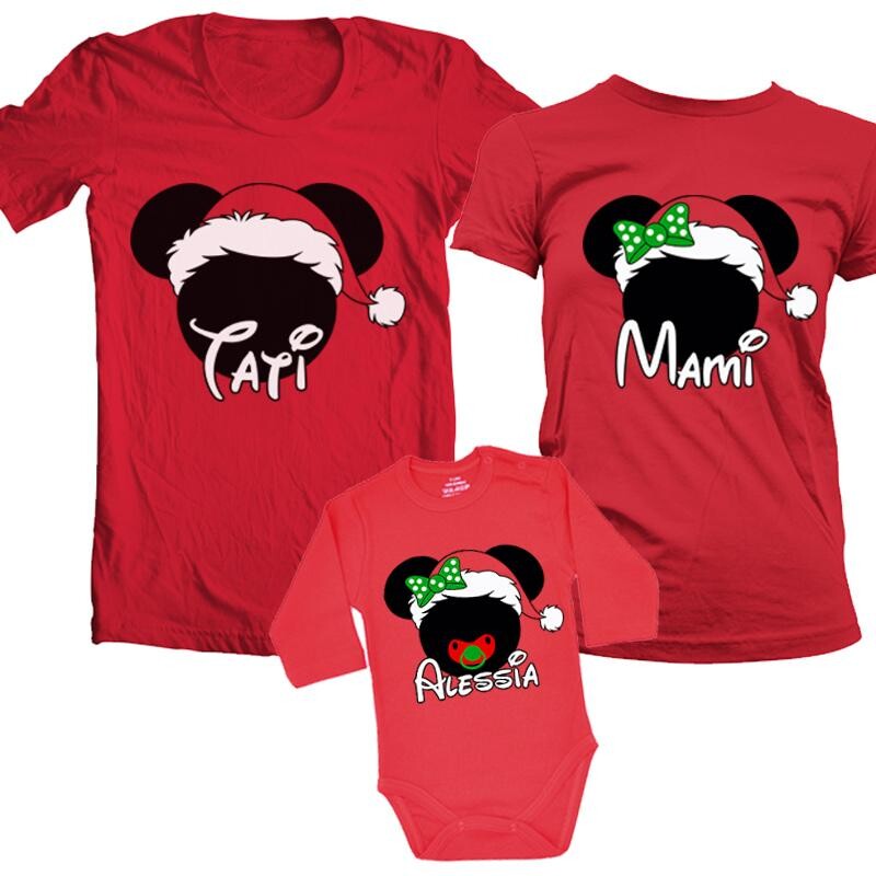 Set personalizat pentru familia de 3 persoane pentru Craciun. Tricourile personalizate se pot folosi pentru sedinte foto sau pentru a adauga savoare unei petreceri de Craciun.