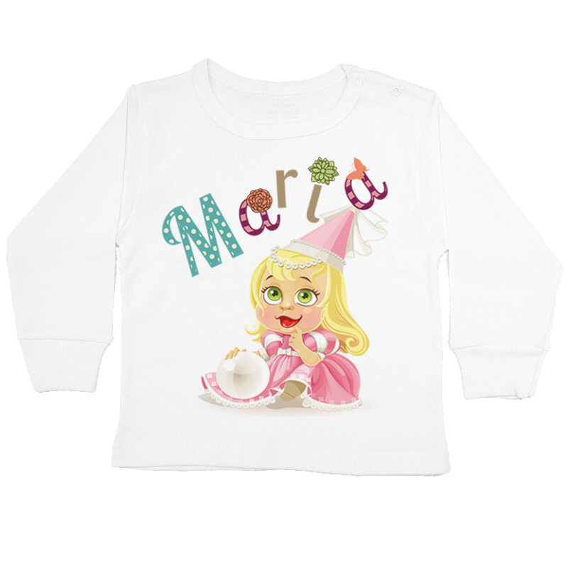 Tricou sau body personalizat pentru copii, cu imprimeu persoanlizat cu numele fetitei,cadoul perfect pentru o petrecere aniversara, cu desen imprimat digital, direct in tesatura tricoului, cu vopsele pe baza de apa, fara potential alergen. Toate produsele sunt din bumbac 100%.
