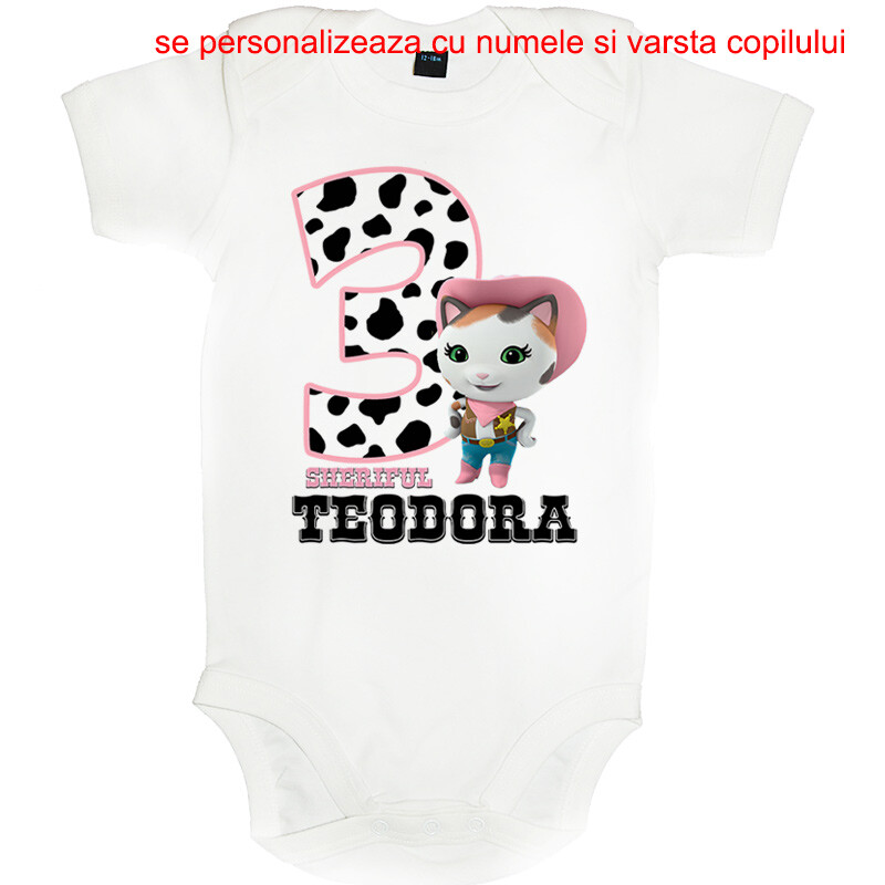 Tricou sau body personalizat pentru copii, cu imprimeu aniversar, cadoul perfect pentru o petrecere aniversara, cu desen imprimat digital, direct in tesatura tricoului, cu vopsele pe baza de apa, fara potential alergen. Toate produsele sunt din bumbac 100%.