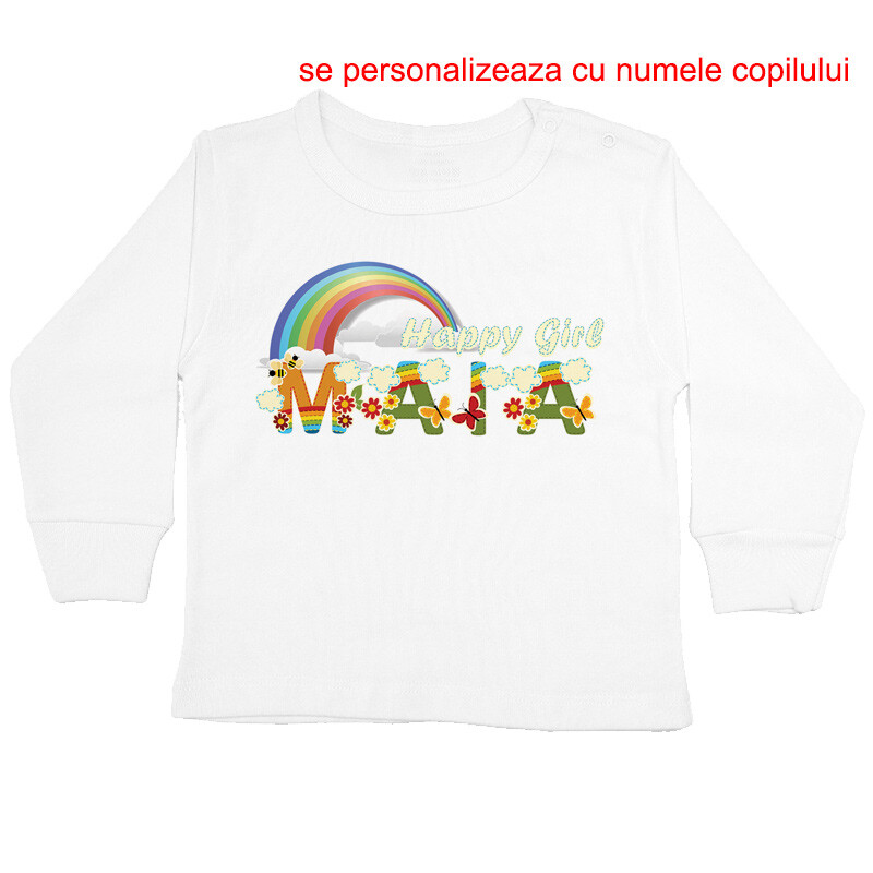 Tricou sau body personalizat pentru copii, cu imprimeu personalizat cu numele copilului, cadoul perfect pentru o petrecere aniversara, cu desen imprimat digital, direct in tesatura tricoului, cu vopsele pe baza de apa, fara potential alergen. Toate produsele sunt din bumbac 100%.