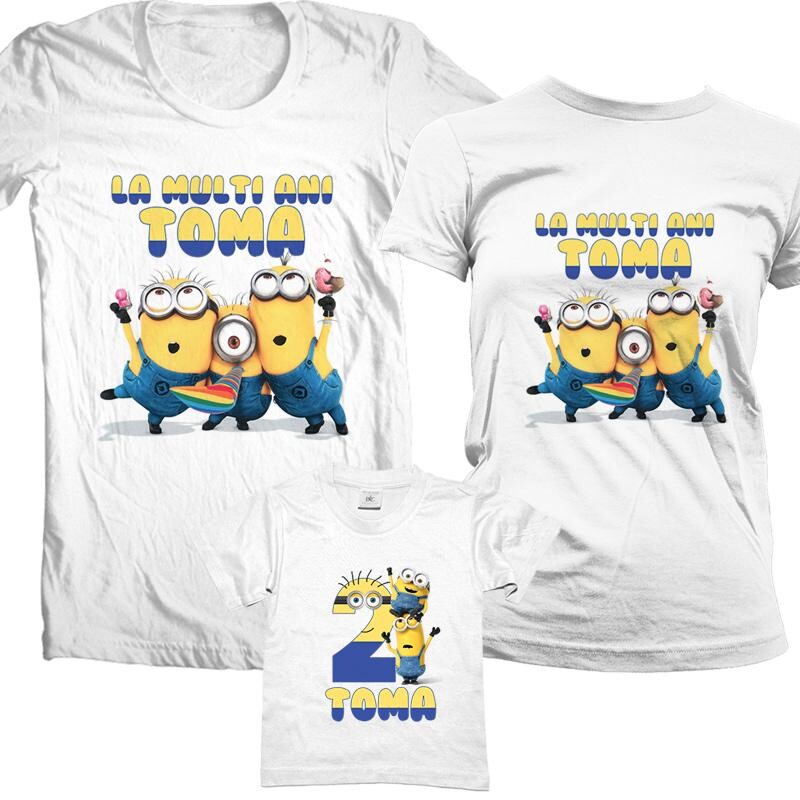 Set personalizat pentru familia de 3 persoane cu un sarbatorit. Tricourile personalizate pentru aniversare se pot folosi pentru sedinte foto sau pentru a adauga savoare unei petreceri aniversare.
