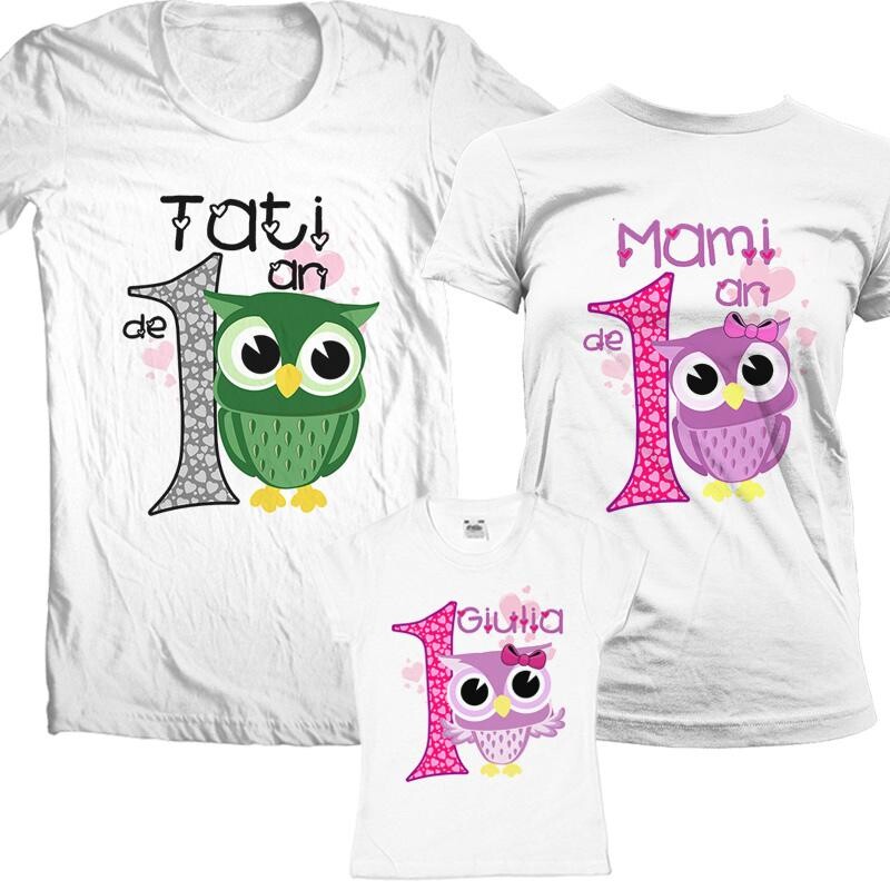 Set personalizat pentru familia de 3 persoane cu uo sarbatorita Tricourile personalizate pentru aniversare se pot folosi pentru sedinte foto sau pentru a adauga savoare unei petreceri aniversare.