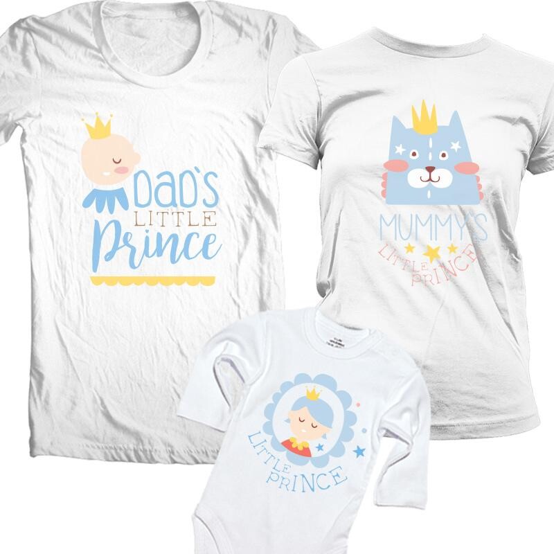 Set personalizat pentru familia de 3 persoane cu un nou nascut. Tricourile personalizate pentru aniversare se pot folosi pentru sedinte foto sau pentru a adauga savoare unei petreceri aniversare.