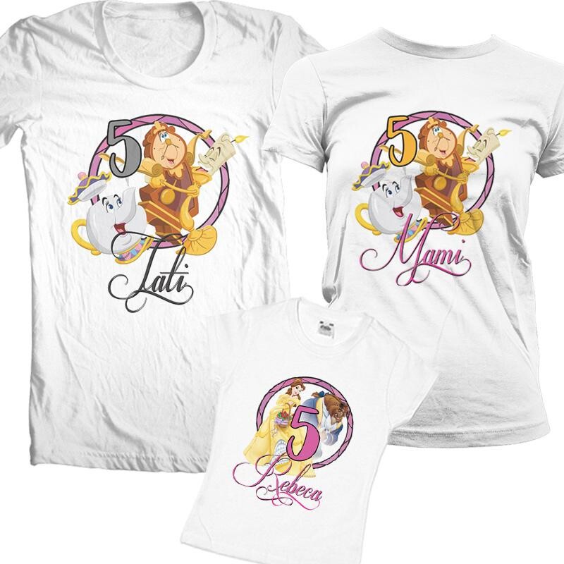 Set personalizat pentru familia de 3 persoane pentru fanii Frumoasa si Bestia si printesa Belle. Tricourile personalizate pentru aniversare se pot folosi pentru sedinte foto sau pentru a adauga savoare unei petreceri aniversare.