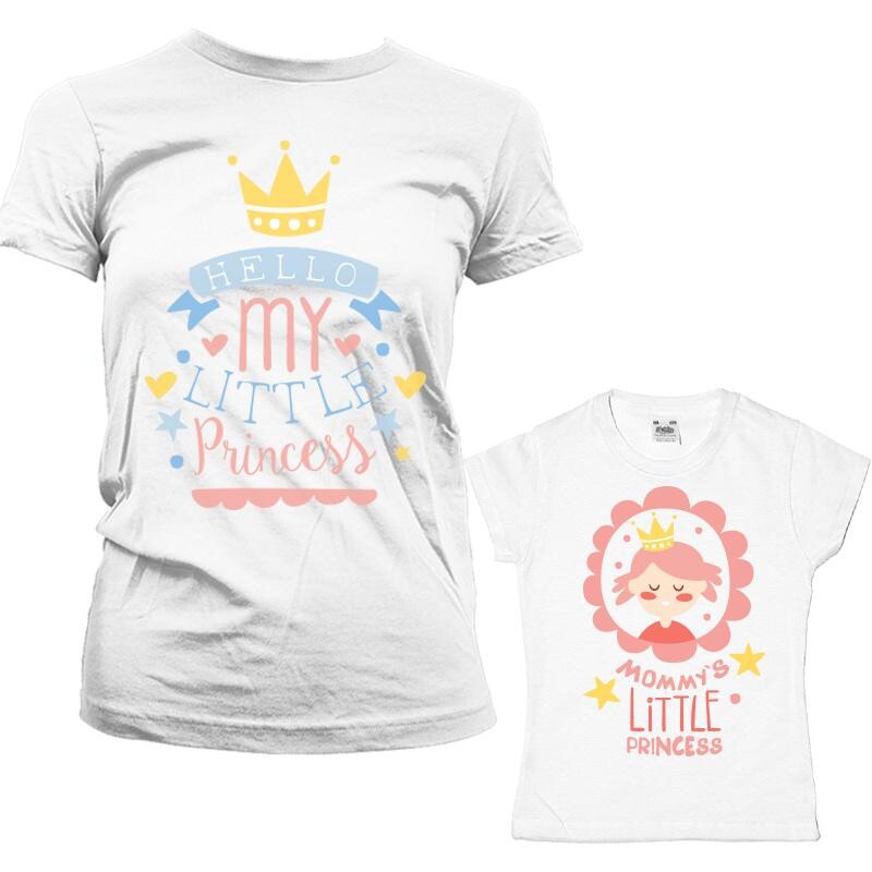 Set personalizat pentru mamica si fetita ei. Tricourile personalizate se pot folosi pentru sedinte foto sau pentru a adauga savoare unei petreceri aniversare.